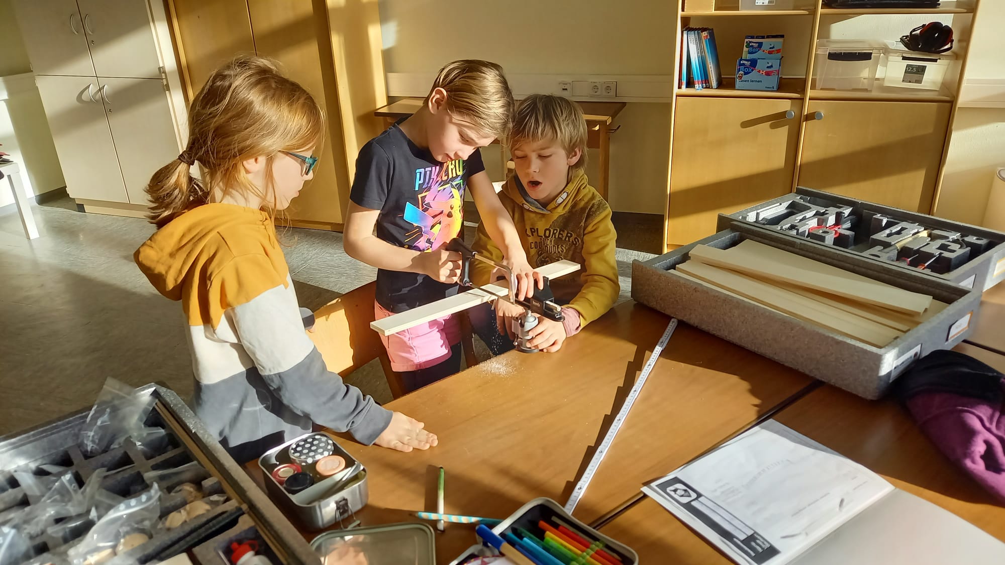 In der MINT-AG der Grundschule Bad Münder werden derzeit allerlei Brücken gebaut. Mithilfe besonderer Technikbaukästen erwerben die Schülerinnen und Schüler hautnah spannende Erkenntnisse über Architektur, Konstruktion, Statik und unterschiedliche Brückenarten.